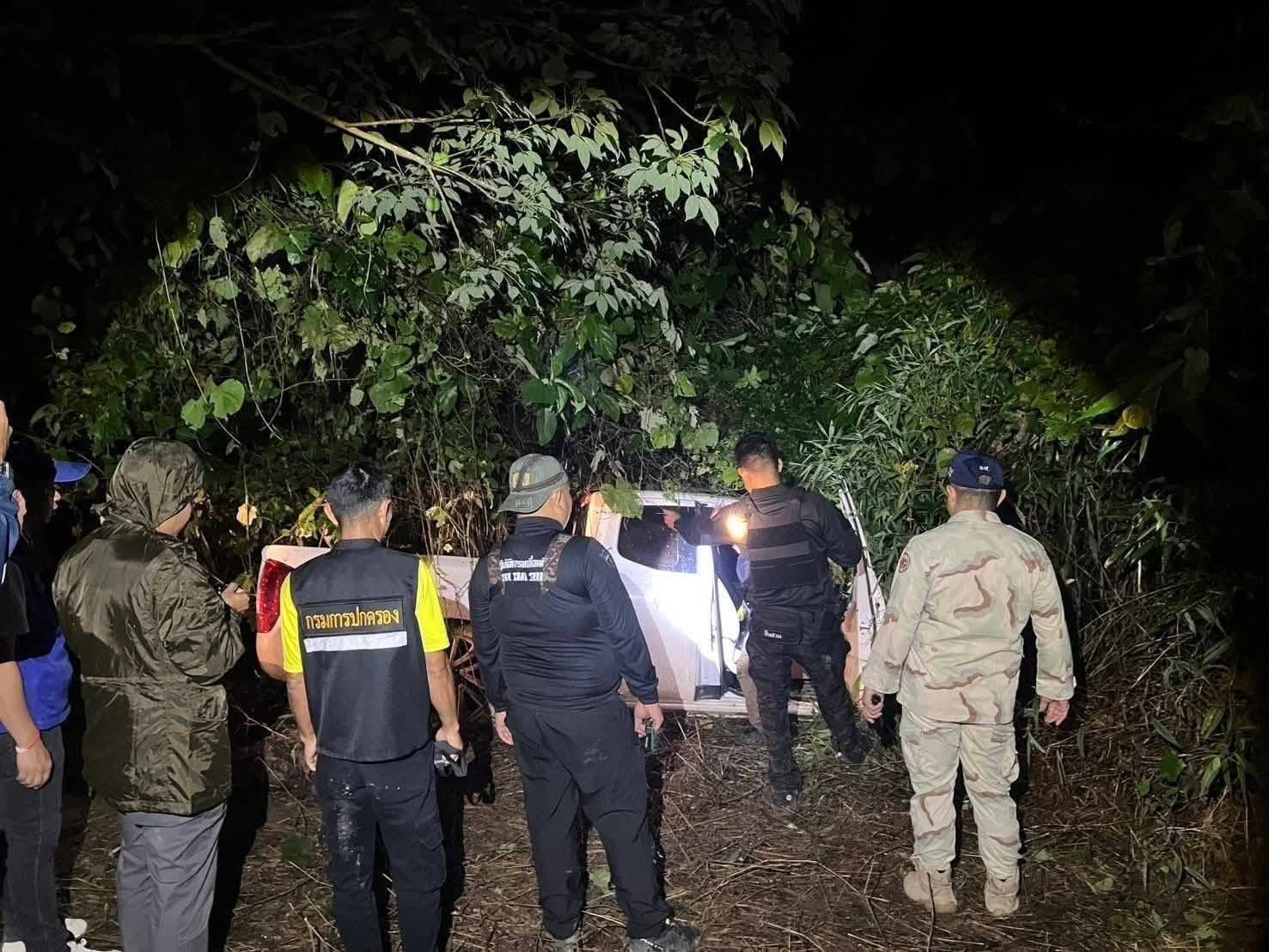 คนในรถหลบหนีพุ่งเข้าไปในพงหญ้าข้างทางอาศัยความมืดวิ่งหลบหนีเข้าป่าไปได้