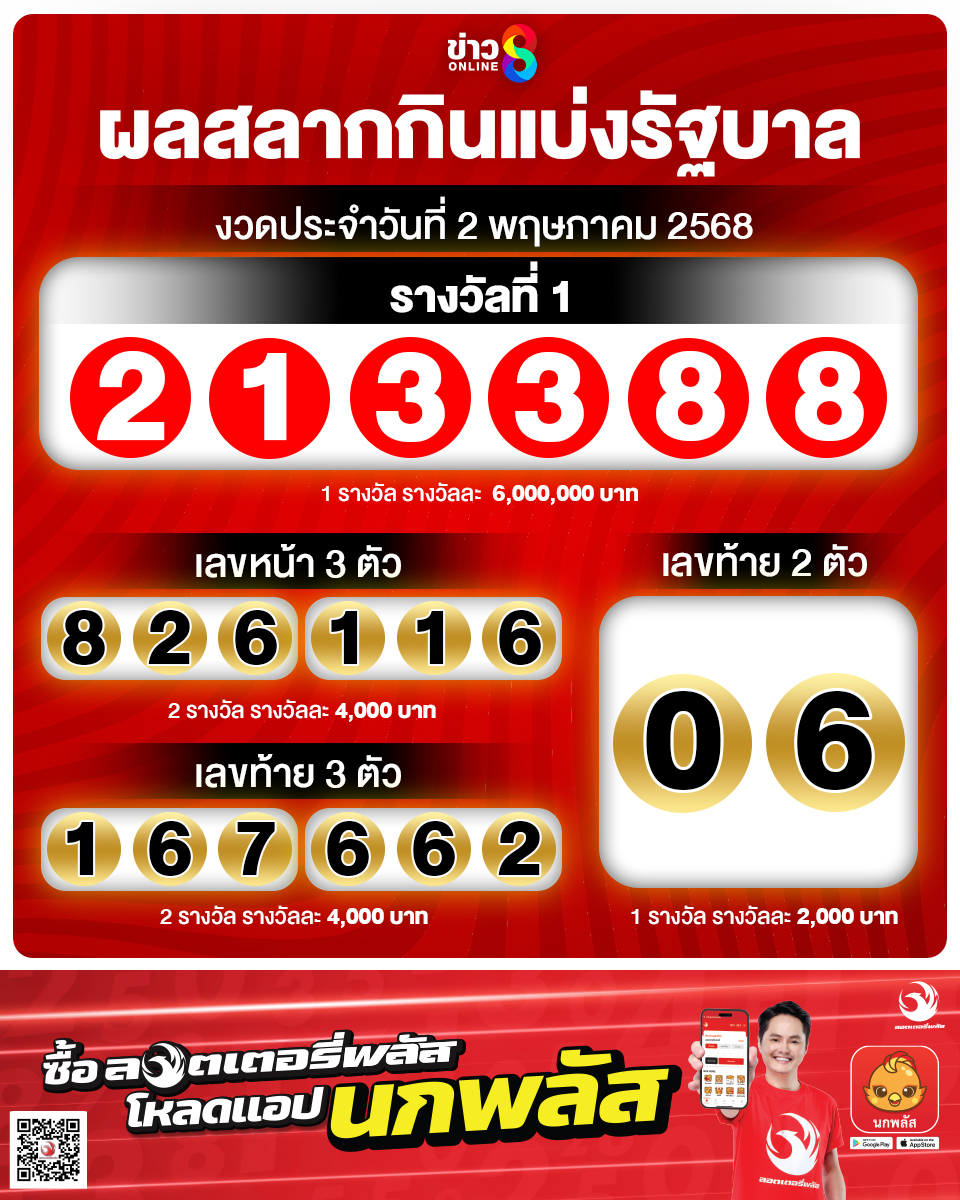 หวยออกครบแล้วนะ งวดนี้มีใครถูกบ้าง ขอเสียงเศรษฐีคนใหม่หน่อย!!!! เลขเด็ดเลขดัง หวยแม่นๆงวดนี้ 03 พ.ค. 2025 735 share tweet share หวยออกครบแล้วนะ งวดนี้มีใครถูกบ้าง ขอเสียงเศรษฐีคนใหม่หน่อย!!!! ผล #สลากกินแบ่งรัฐบาล งวดวันที่ 2 พ.ค. 2568 รางวัลที่ 1 213388 เลขหน้า 3 ตัว 826 / 116 เลขท้าย 3 ตัว 167 / 662 เลขท้าย 2 ตัว 06 สมัคร สังซื้อ ลอตเตอรี่พลัส คลิกที่นี่