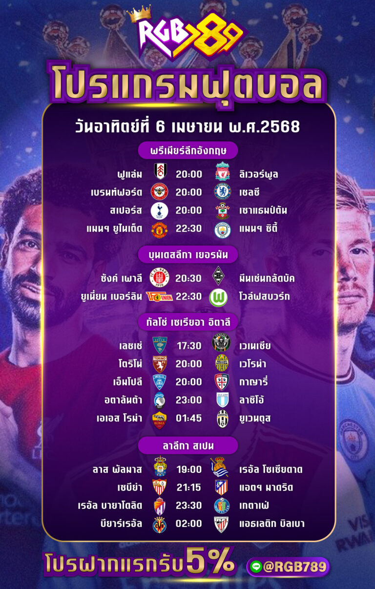 ตารางบอล ถ่ายทอดสด วันที่ 6 เมษายน 2568